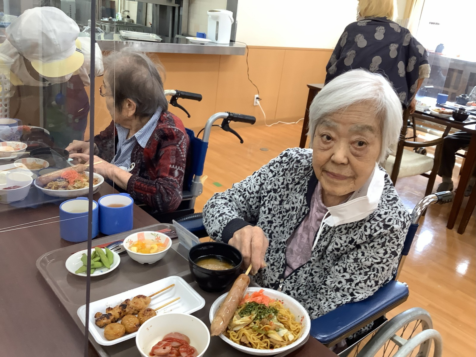 当日は、苑長たちが屋台に立ち、焼きそば・焼き鳥・フランクフルト をふるまいました。